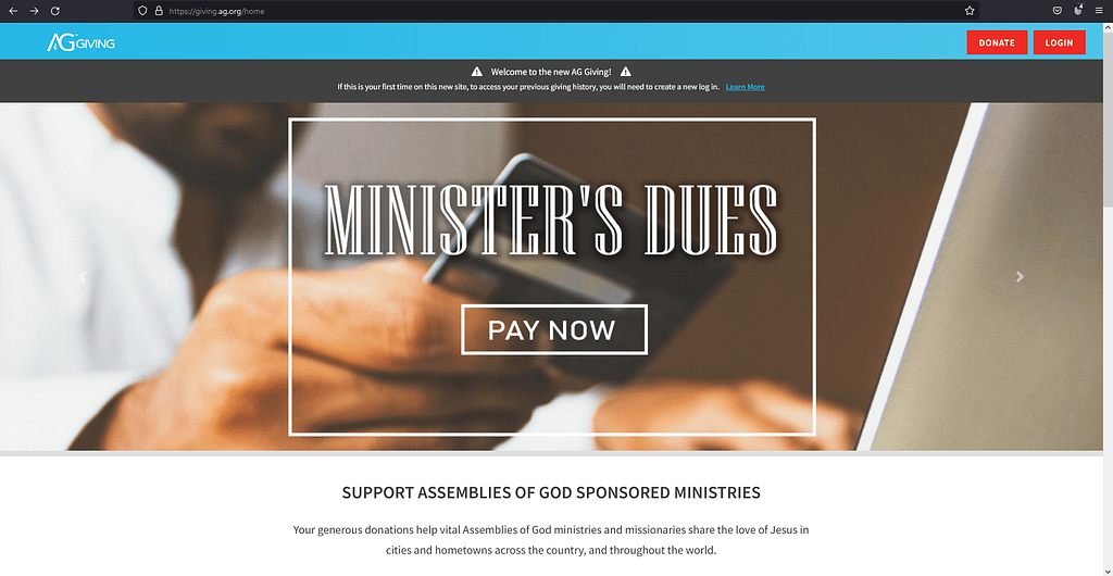 - If you are a CHURCH, then please see the “church specific” information at https://giving.ag.org/home/help/official-church-instructions