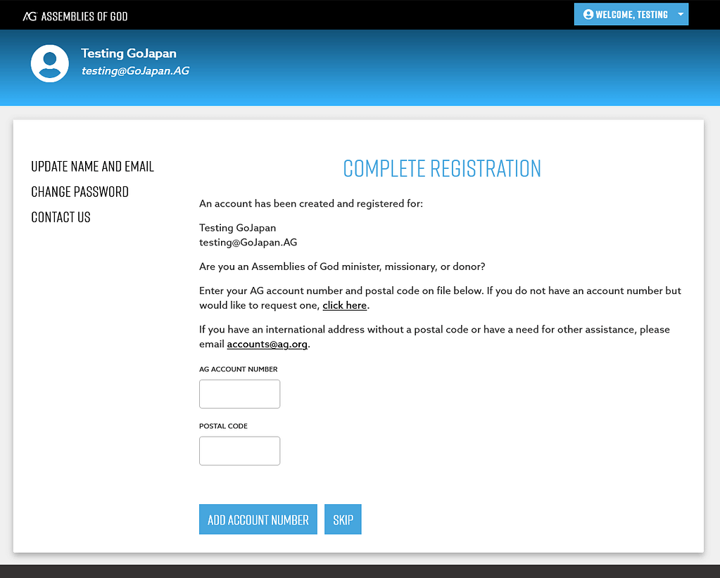 - Of course, instead of “Testing GoJapan” in the upper left, it will have your First and Last Name