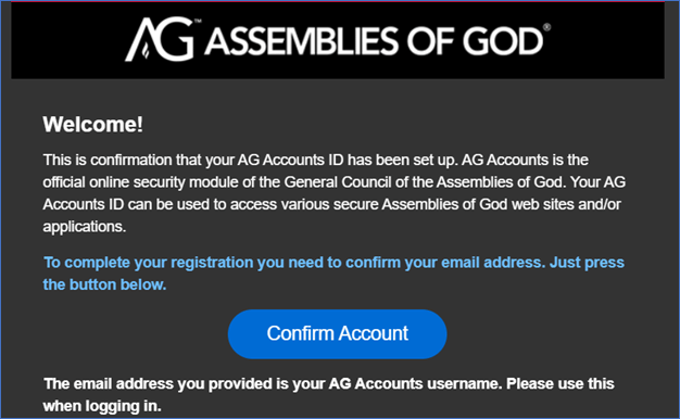 - Please check your email to locate the Welcome email and click the Confirm Account button to confirm your email address.